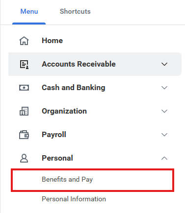 1. After signing into Workday, click on the Menu. Then click on the Benefits and Pay, in the Personal section: